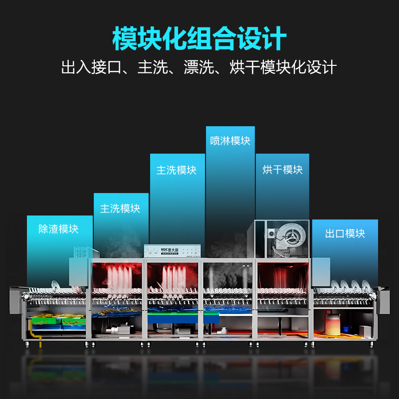 13、強(qiáng)大的除渣功能,免去人工除渣的繁瑣,使餐盤(pán)高效周轉(zhuǎn)。